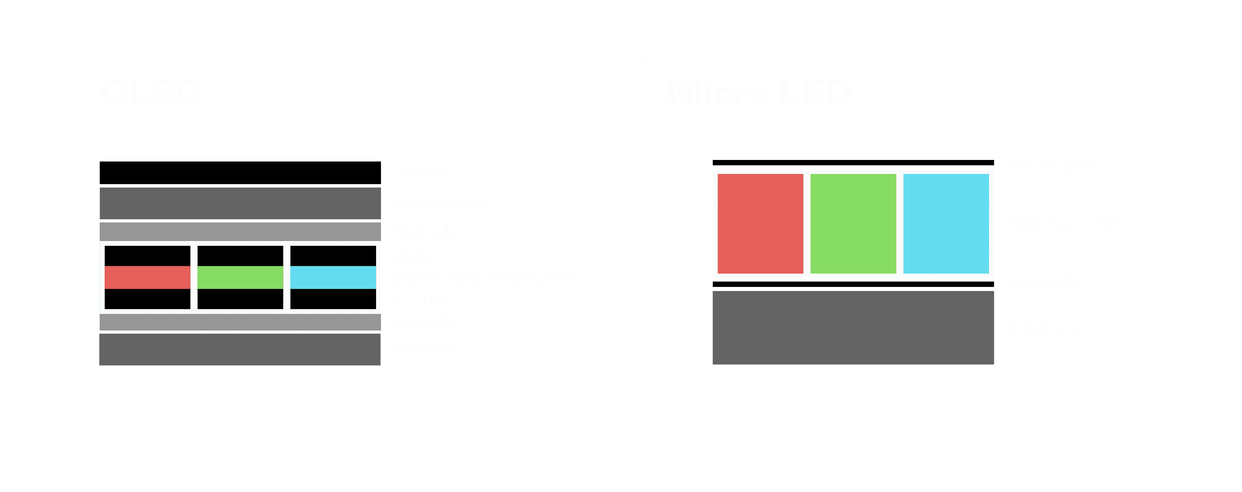 以 LED 做为显示画素,,,,可让 LED 的发光效率发挥到极致,,从而让显示器具备优异的亮度表现,,,不论是在户外或室内,,均具备出众的显示效果。。。同时,,,,与使用有机材料的 OLED 相比,,LED 具备更稳定、、寿命更长的特性,,,,不仅不会有画面烙印问题,,,而且更不容易出现故障、、、、坏点。。。。