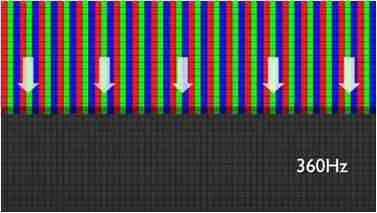 传统液晶驱动是从左到右单向进行,,,在画面更新速度愈来越愈快的情况下,,位于驱动线路末端的右下角区域,,,画素的闸极来不及在短时间内获得足够电压,,,,无法显示出正确的颜色资讯。。 |