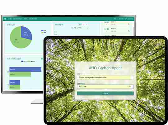 依循 ISO 国际标准建置出符合国际标准的全方位碳管理平台 (AUO Carbon Agent),,,其中温室气体盘查模组可协助客户将组织、、、、产品与供应链的碳排放源数据,,,透过系统内建的系数资料库自动计算出碳排量,,,提升整体盘查作业的效率,,并以此拟定长期减碳策略,,达到低碳转型、、、净零碳排的目标。。。。