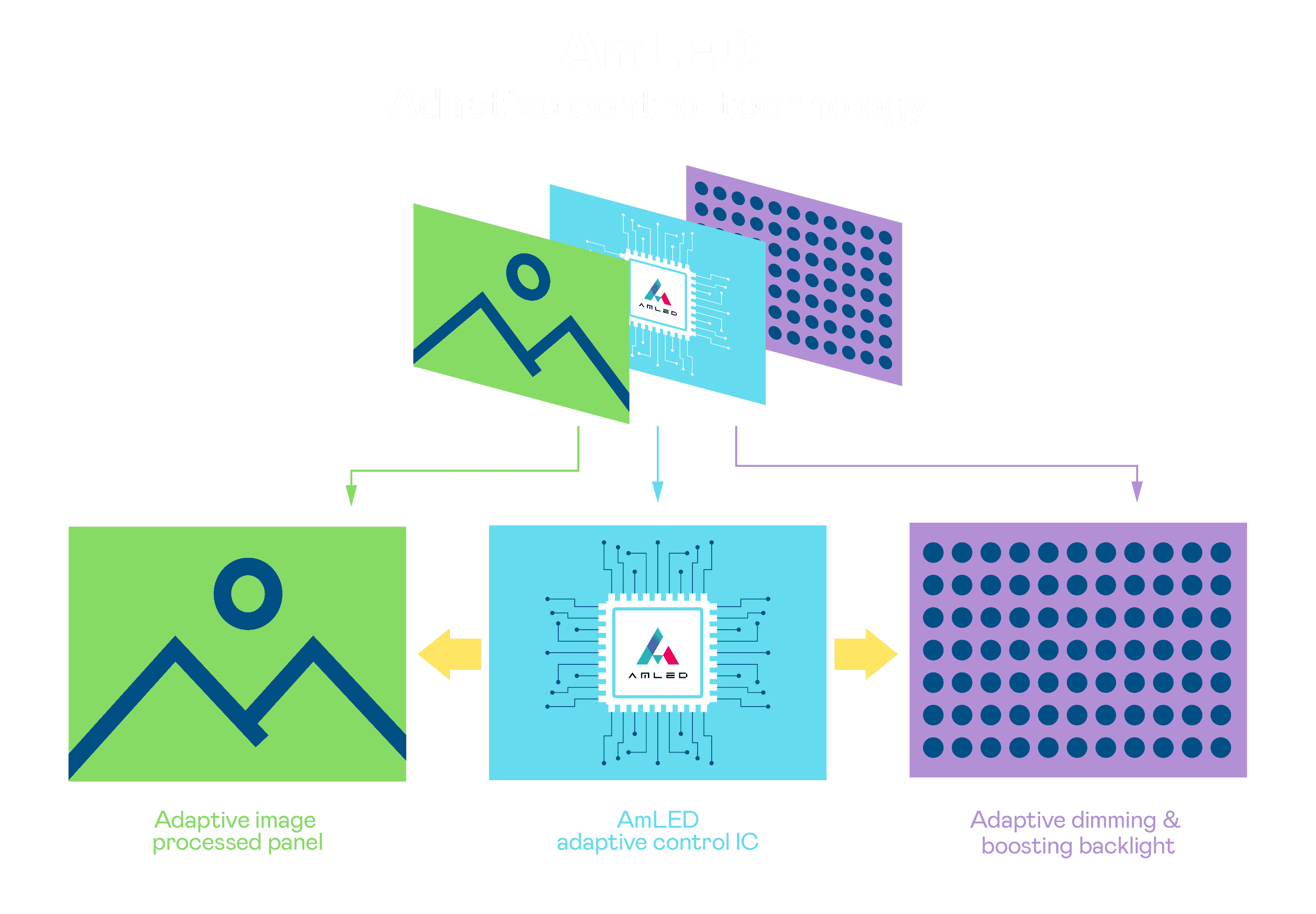 透过动态影像处理和 Mini LED 背光模组的动态对比及峰值亮度调变,,AmLED 显示技术精准细致的局部调光效果达到超过 1,000 nits 的超高亮度表现,,,,亮部更明亮、、暗处更深邃,,呈现真实黑色中的亮度以及平滑灰阶,,,,打造出具层次分明的精致光影细节。。
