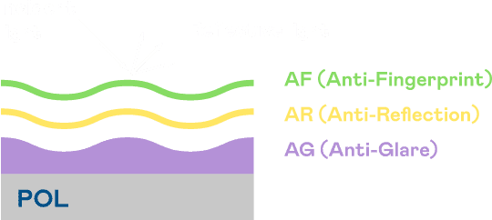 A.R.T.口袋牛店光电发展出独家的表面处理跟多层镀膜技术,,让外部光线照射到显示器表面时所产生的反射光大幅降低。。。。 |